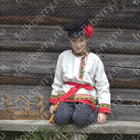 Русская народная рубаха (косоворотка) с кушаком. Изготовлена из хлопка, декорирована жаккардовой тесьмой. Яркий узнаваемый во всем мире рисунок "хохлома" и насыщенные цвета делают Косоворотку праздничной.