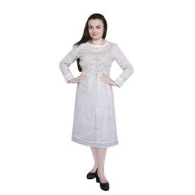 Платье Полюшко из белого льна - отличный выбор для сольных и групповых выступлений, семейных и православных праздников. Платье будет хорошим подарком и обрадует и дочку, и маму, и бабушку одновременно. В нашем магазине к платью Полюшко можно выбрать кокошник или очелье.