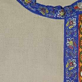 Материалы: лен, жаккардовая тесьма с обережными символами