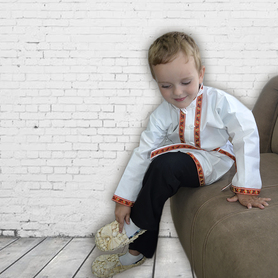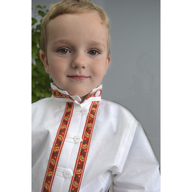 Рубаха Истоки, белый лен с синим