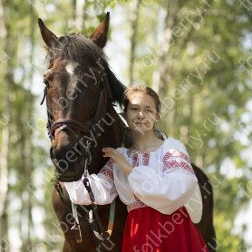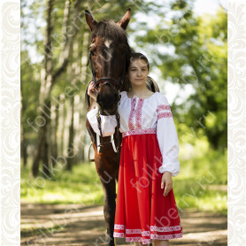 Сарафан из габардина с блузой «Красна девица» – яркая стильная модель, выполненная в народном стиле. Изделие отлично сядет по фигуре и подчеркнет природную красоту девушки.